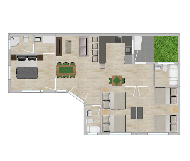 - Size: 95 – 115 M2 (Kitchen & Living Space)